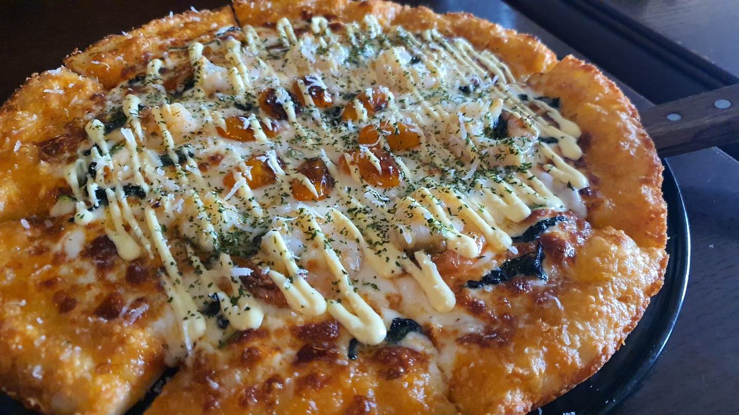 저희는 베이컨포테이토 피자와 새우토마토시금치피자를 주문했습니다!