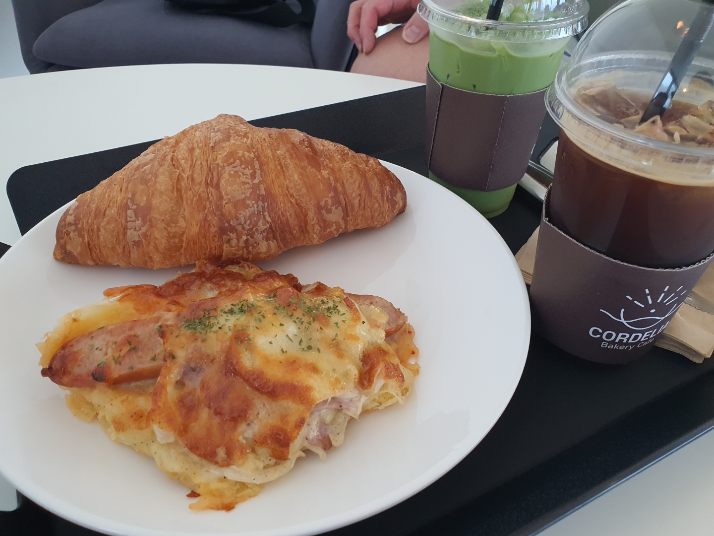 크로와상은 엄청..사이즈가 크고^^ 햄치즈 페이스츄리라는데 바삭함보단 촉촉하고 매콤했어요~