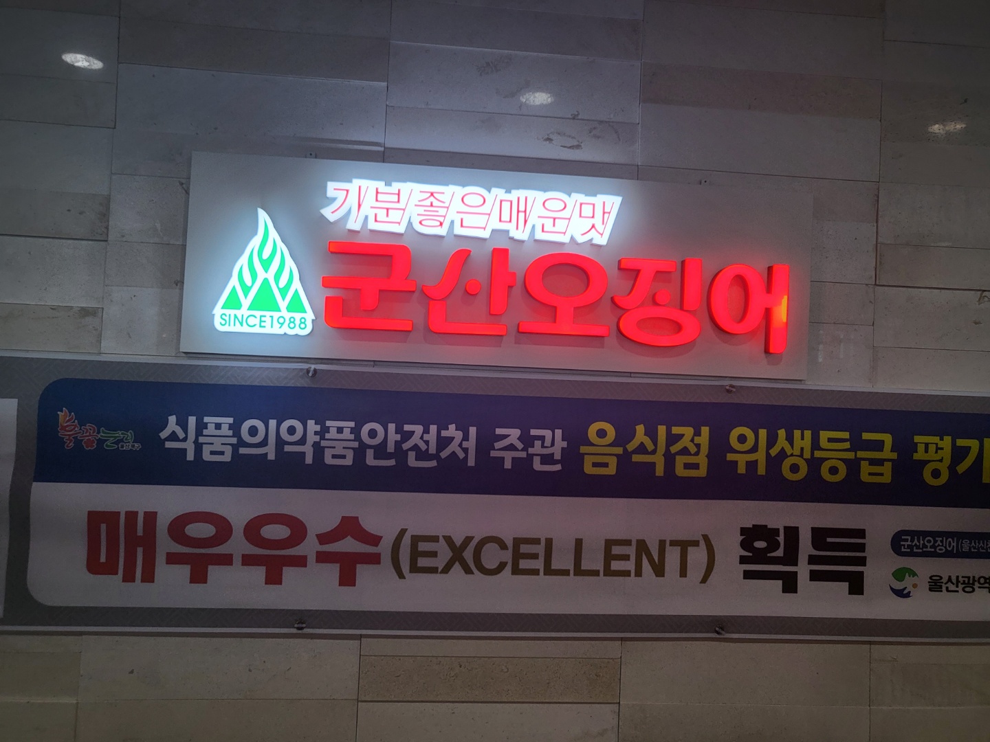 군산오징어는 식품의약품안전처가 주관하는 음식점 위생등급평가가 매우 우수한가봐요