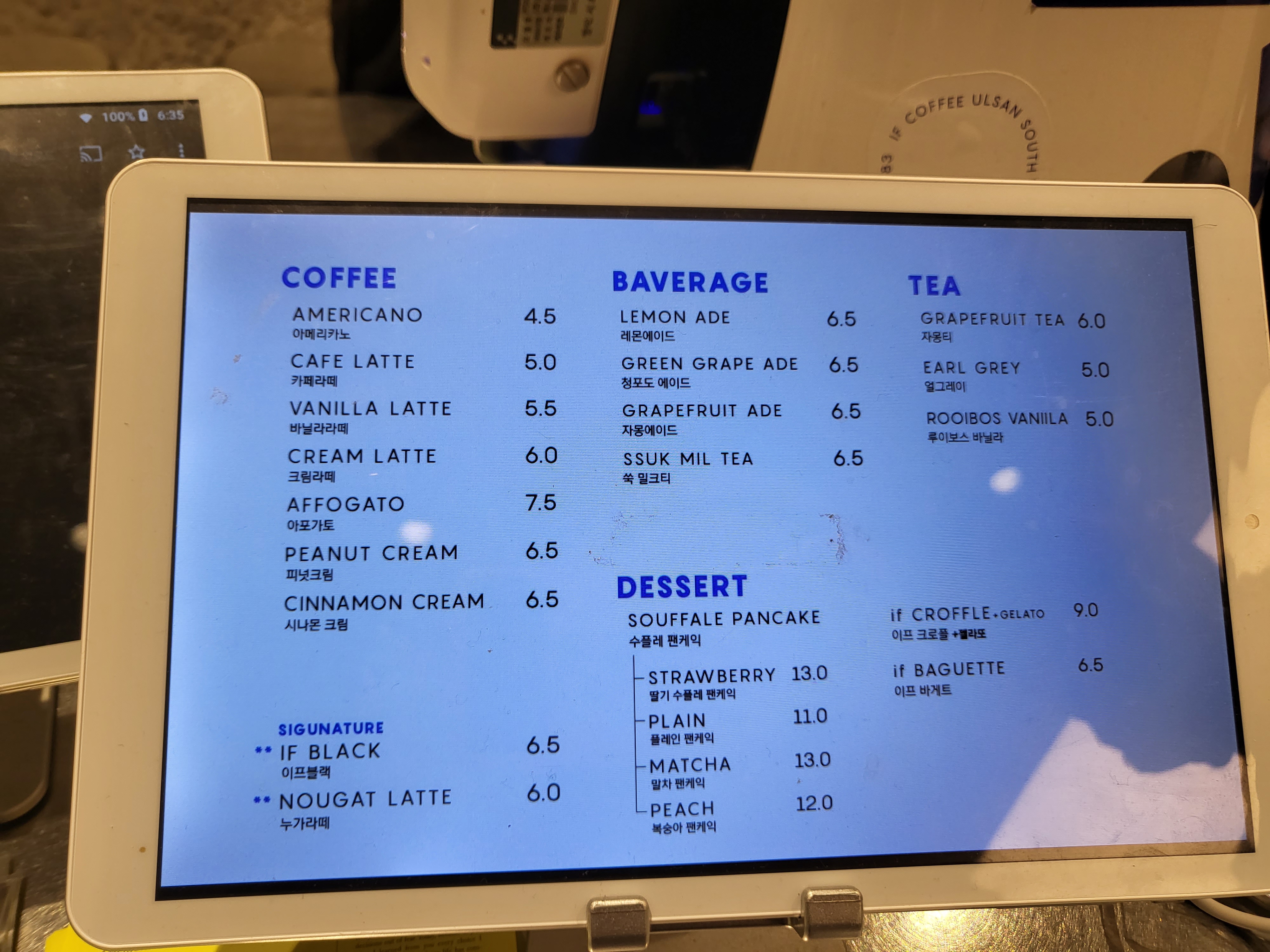 금액대는 타 커피숍이랑 비슷비슷한편 (에이드가 좀비싼편..)