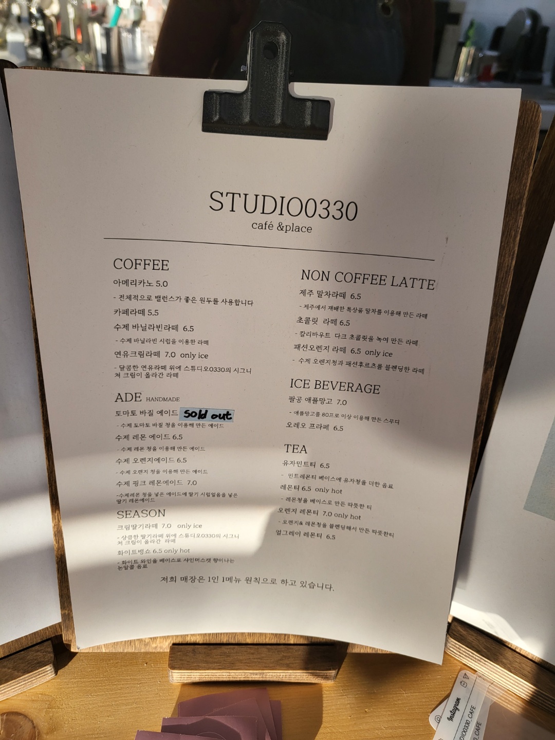 카페스튜디오0330 명함 인스타 감성이라 했더니..명함이 인스타!!!