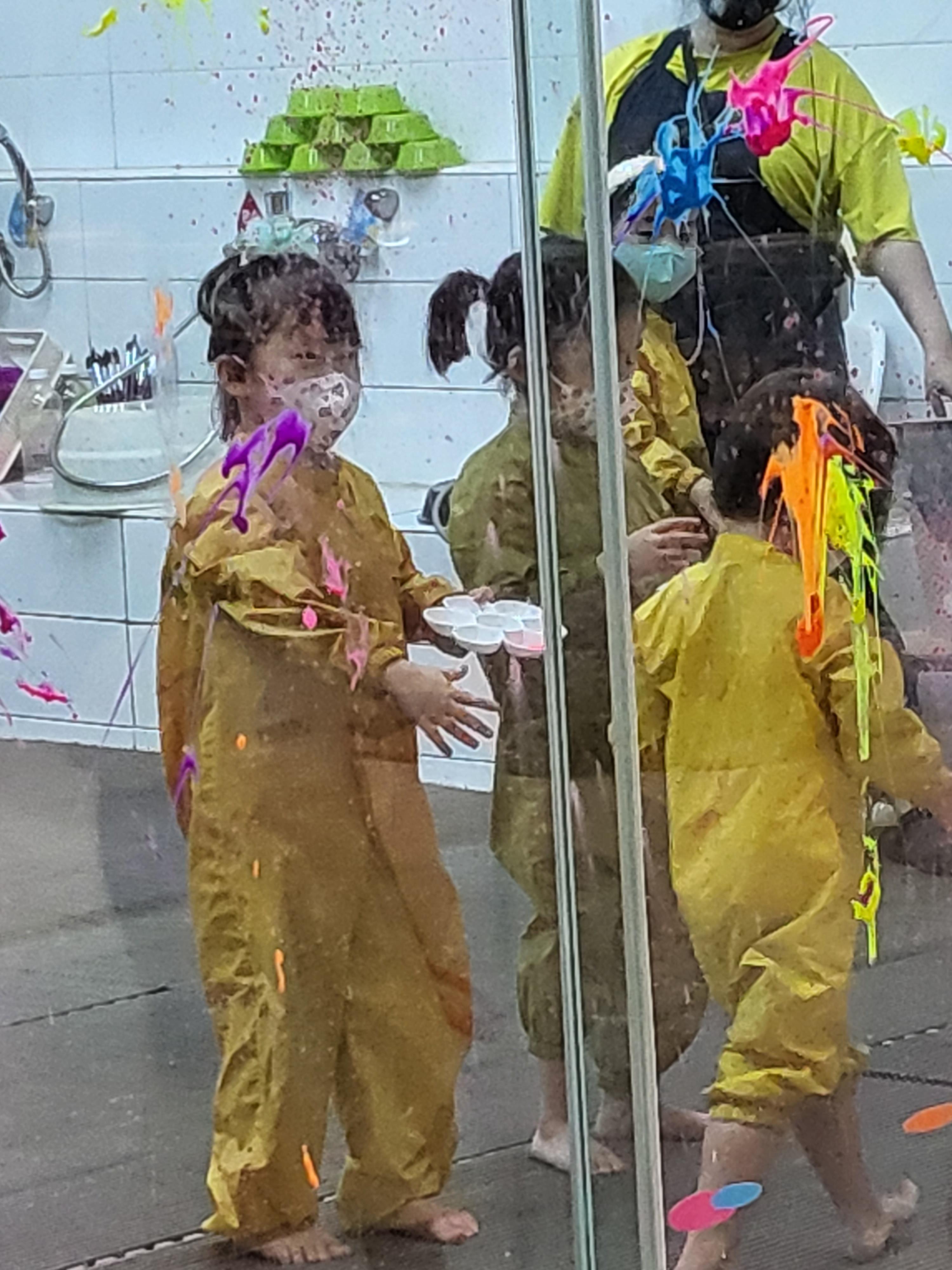 귀랑 머리카락에 묻은 물감은 선생님께서 깨끗하게 닦아주시고 마스크 어떻게하냐고..걱정..