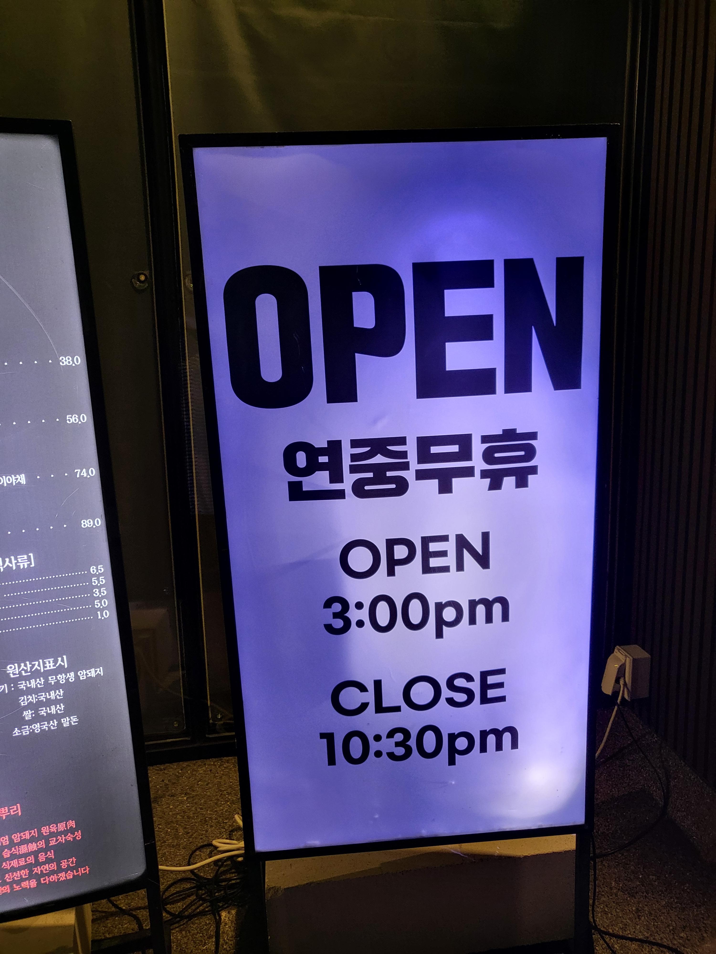 여긴 연중무휴에요! 3시부터 10시반까지 영업하시네요!