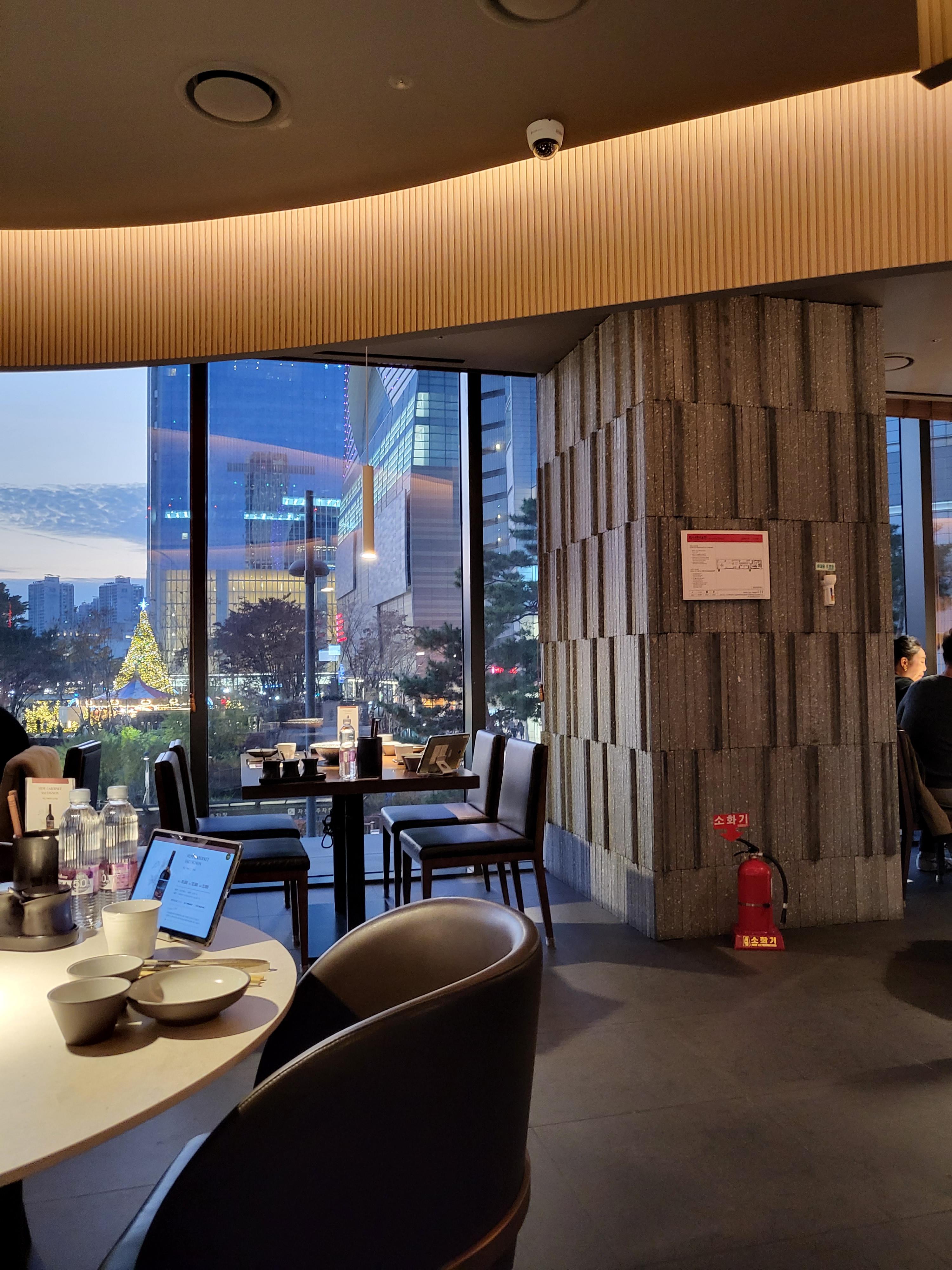 사람들 들어오기전에 후딱 사진을 찍었어요.. 창에 보이는곳은 롯데타워..