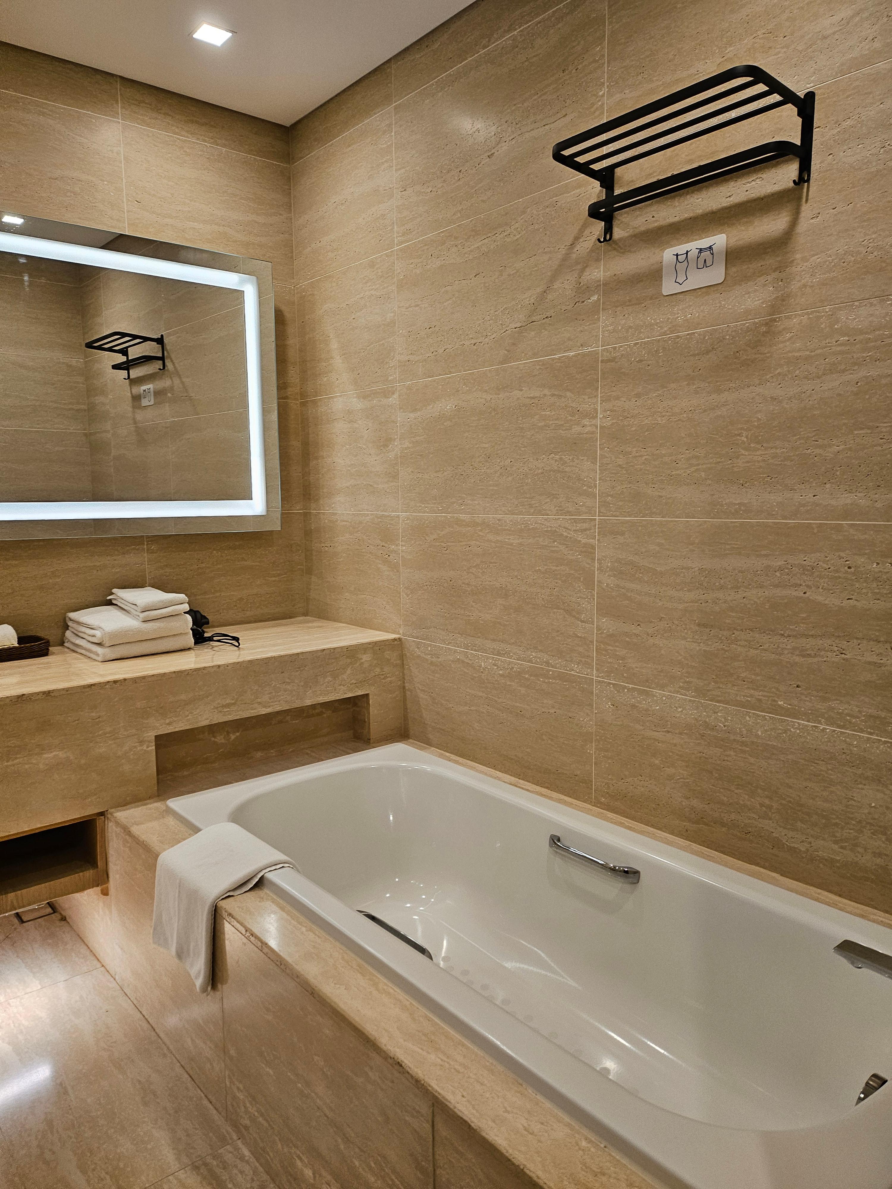 그리고 수영복 말릴수있는 행거가 욕조 옆쪽에 있다보니 걸어놓으러 욕조 올라가는것도 조심조심해야하고